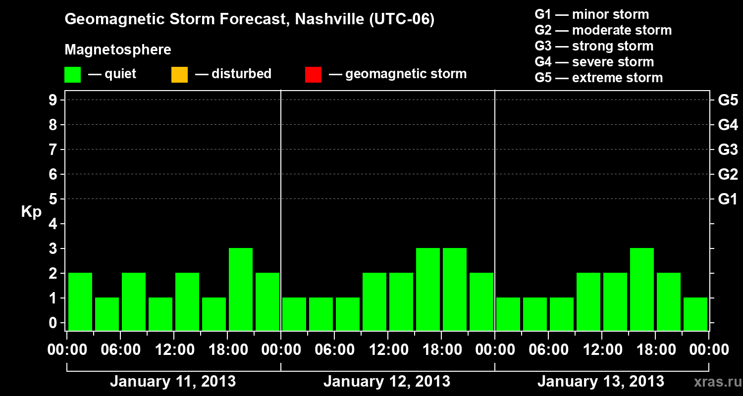 Geomagnetic storm forecast in Nashville for Jan 11, 2013
