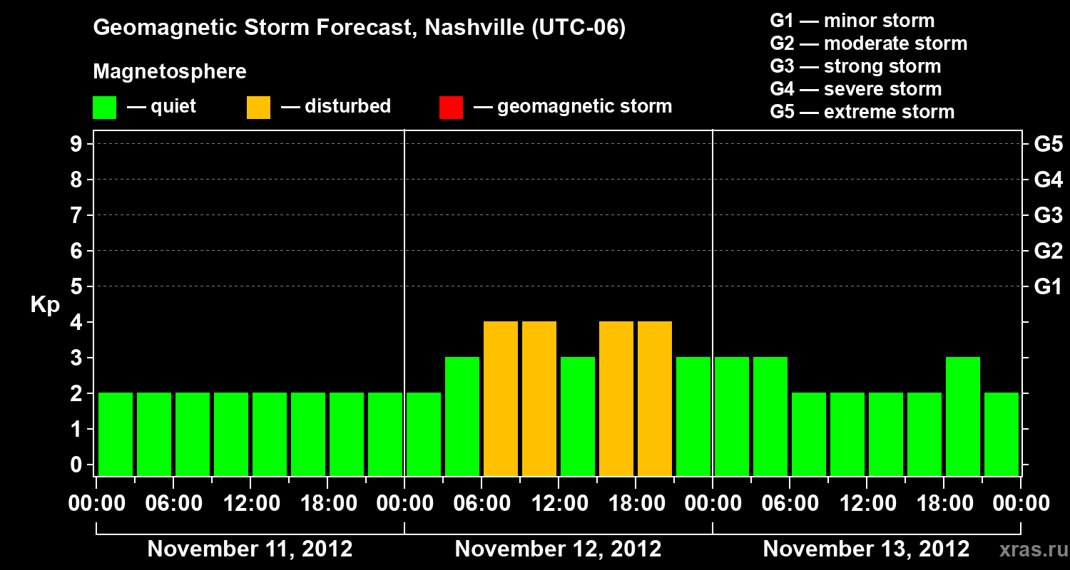Geomagnetic storm forecast in Nashville for Nov 11, 2012