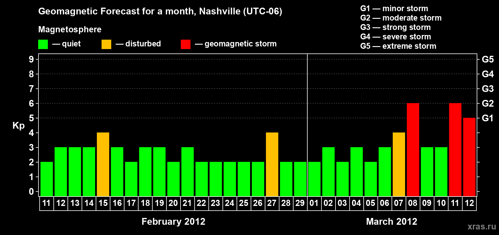 Geomagnetic storm forecast in Nashville for Feb 11, 2012