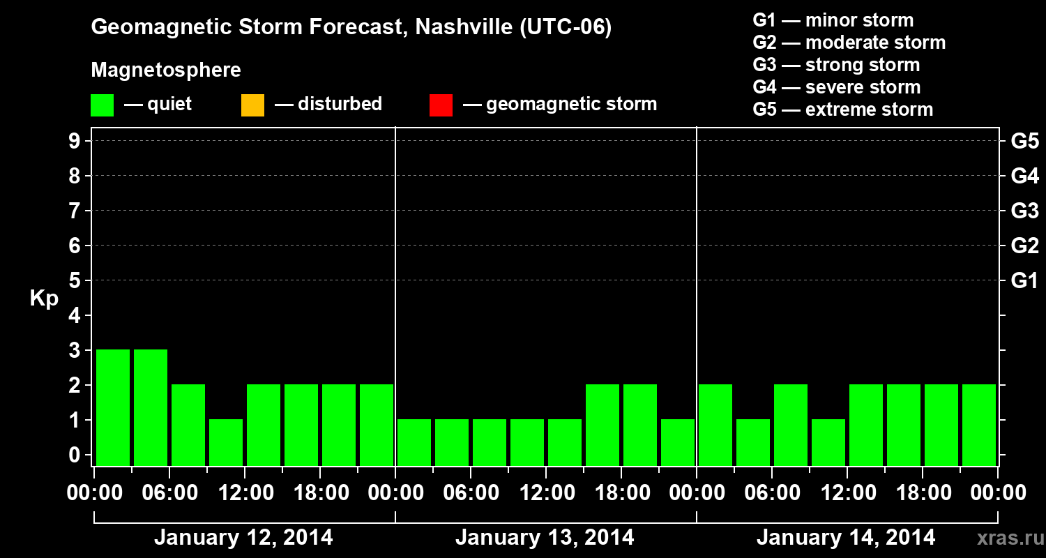 Geomagnetic storm forecast in Nashville for Jan 12, 2014