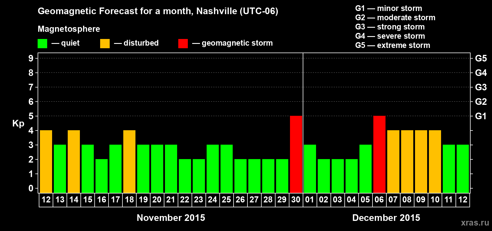 Geomagnetic storm forecast in Nashville for Nov 12, 2015