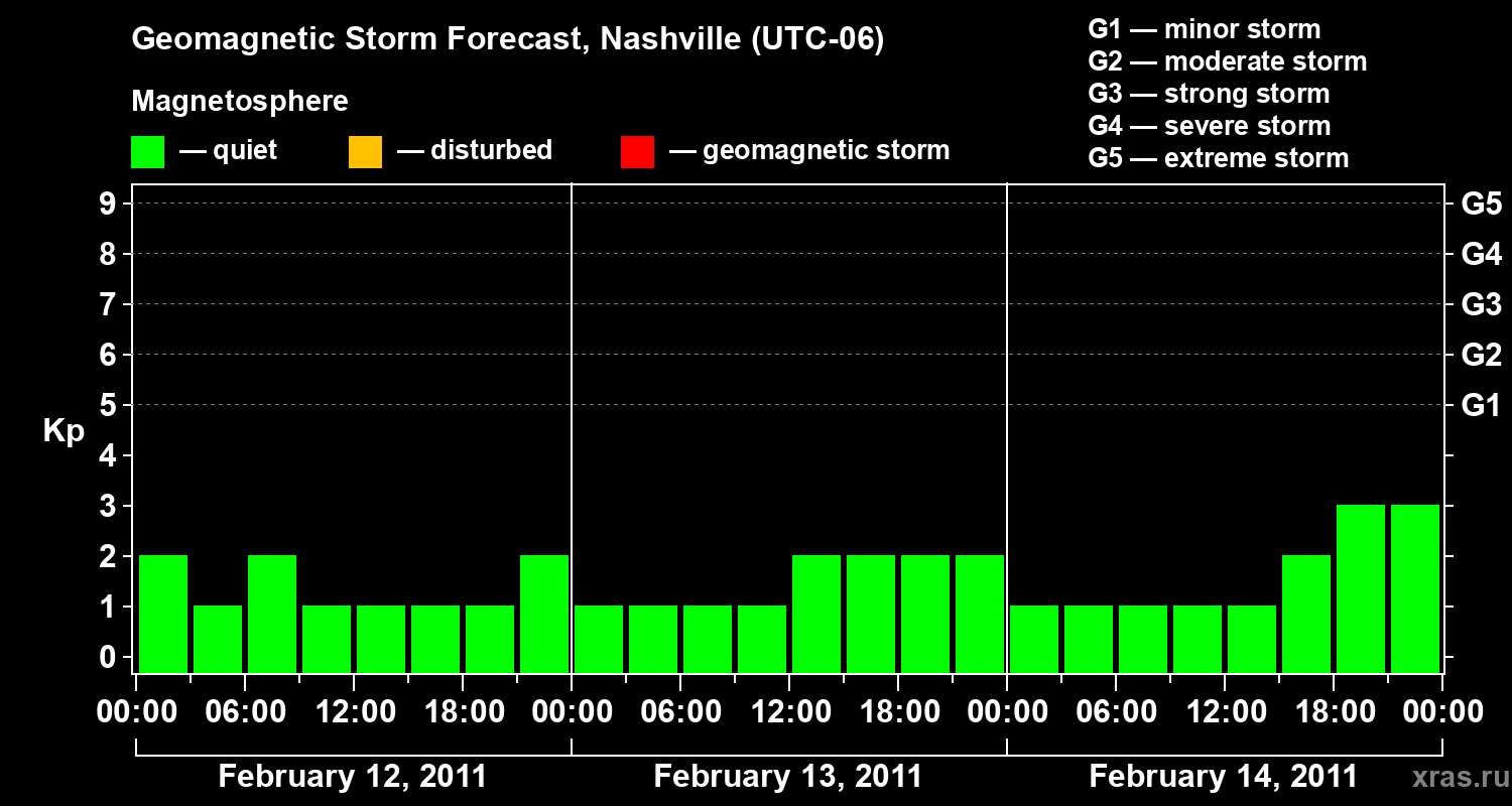 Geomagnetic storm forecast in Nashville for Feb 12, 2011