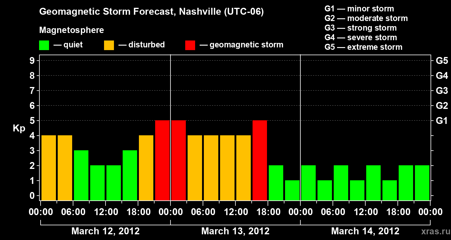 Geomagnetic storm forecast in Nashville for Mar 12, 2012