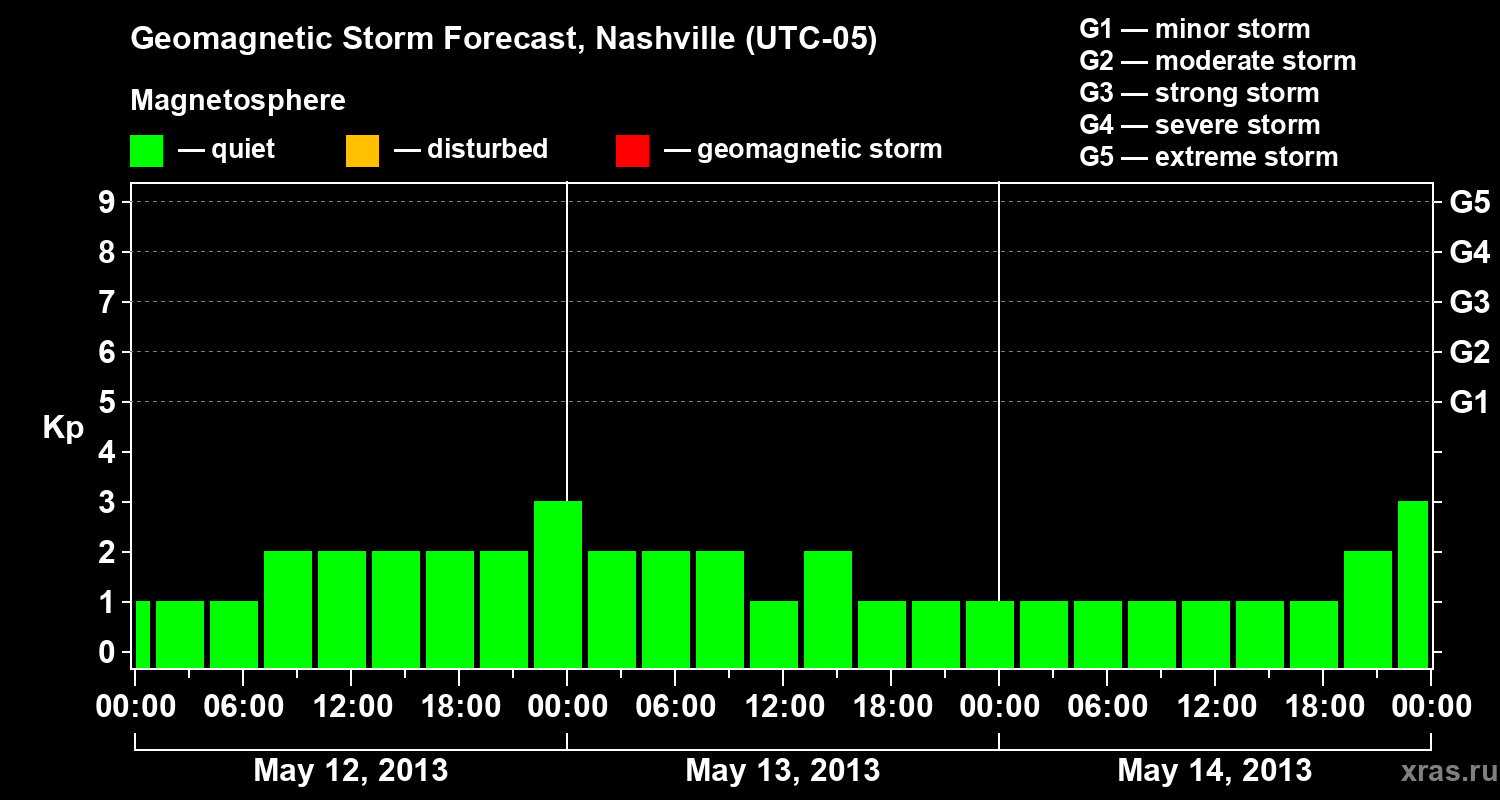 Geomagnetic storm forecast in Nashville for May 12, 2013