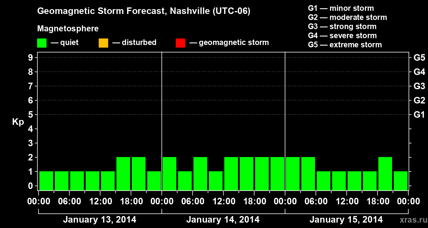 Geomagnetic storm forecast in Nashville for Jan 13, 2014