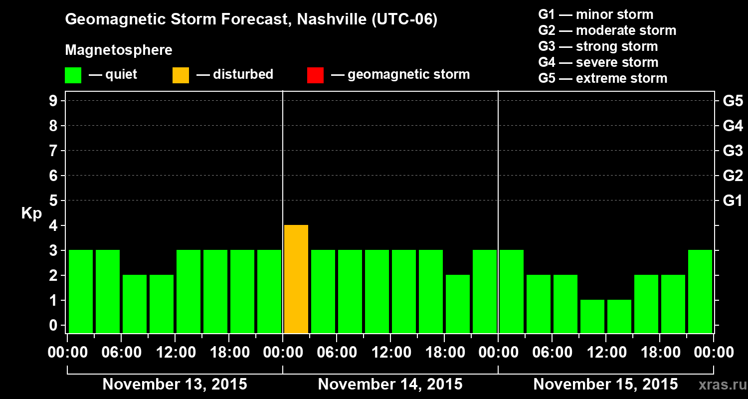 Geomagnetic storm forecast in Nashville for Nov 13, 2015