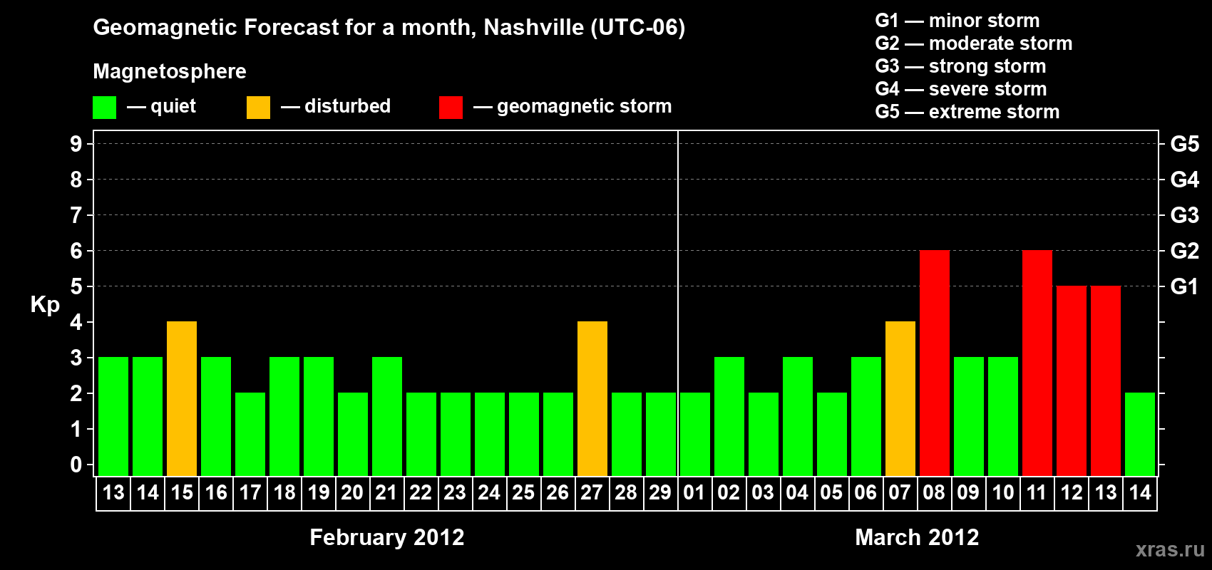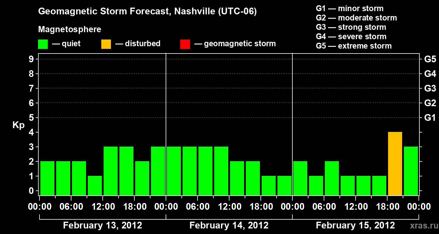 Geomagnetic storm forecast in Nashville for Feb 13, 2012
