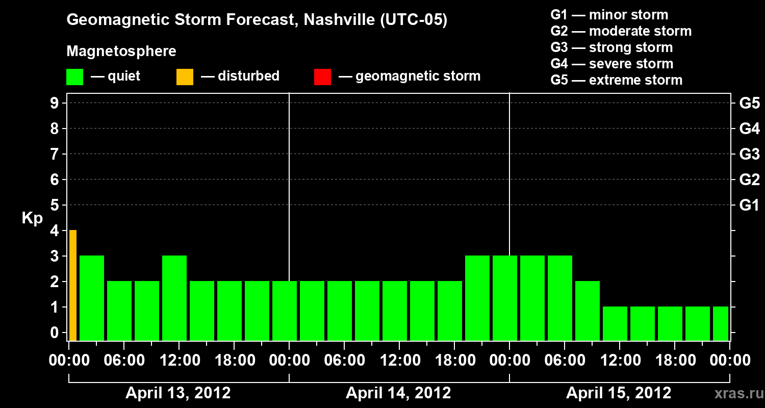 Geomagnetic storm forecast in Nashville for Apr 13, 2012