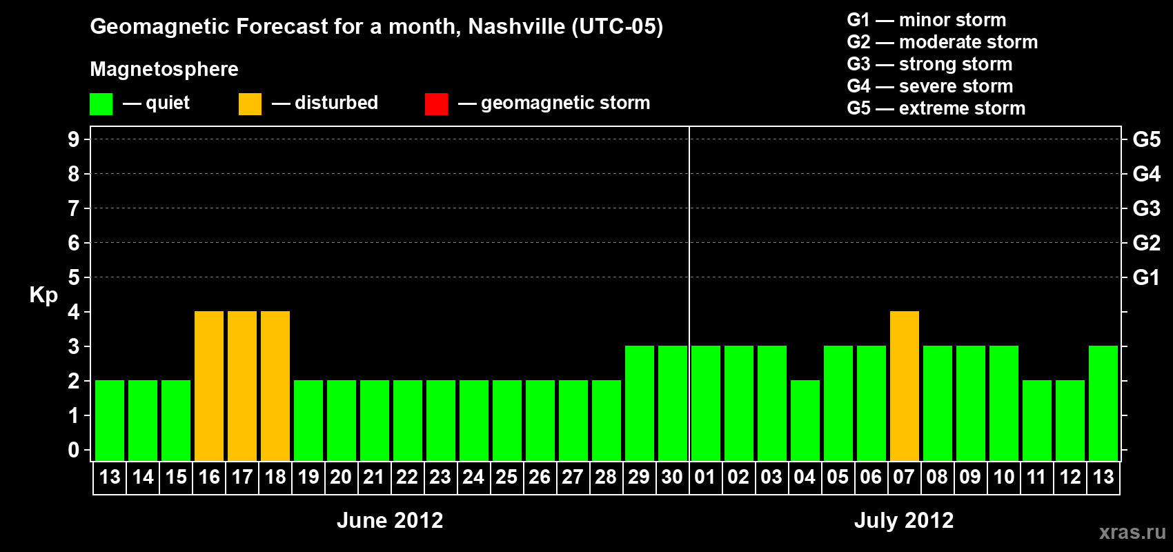 Geomagnetic storm forecast in Nashville for Jun 13, 2012