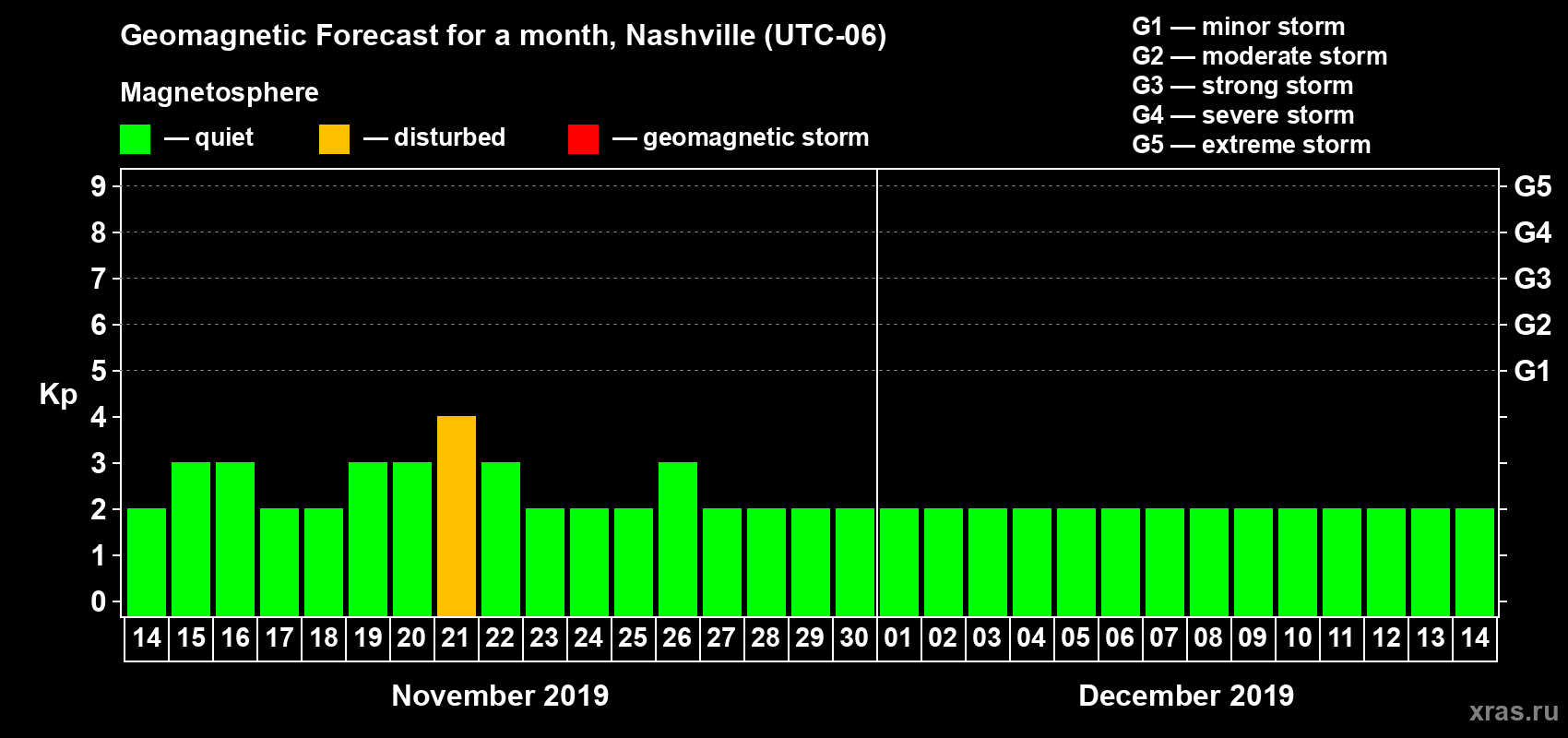 Geomagnetic storm forecast in Nashville for Nov 14, 2019