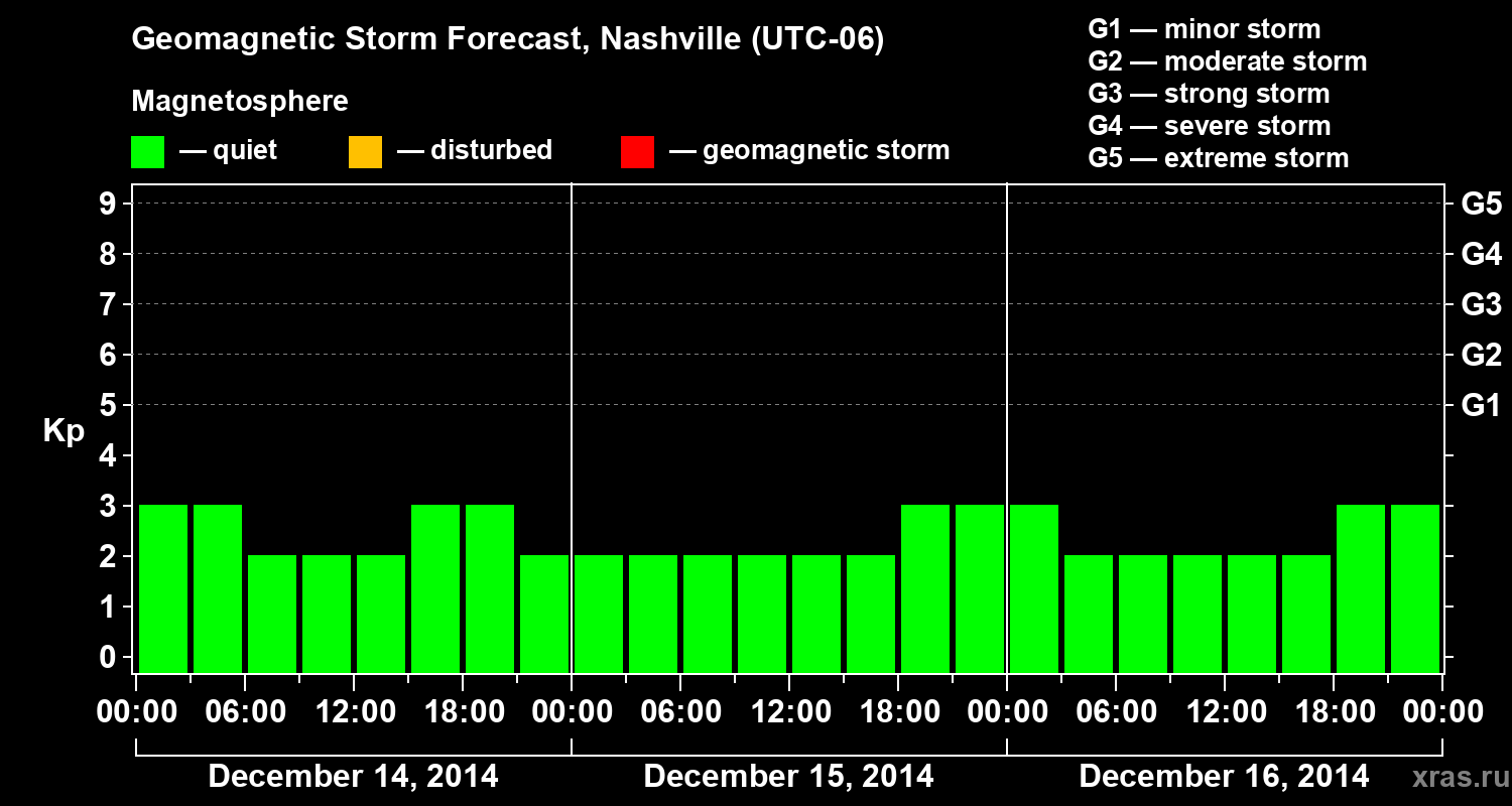 Geomagnetic storm forecast in Nashville for Dec 14, 2014