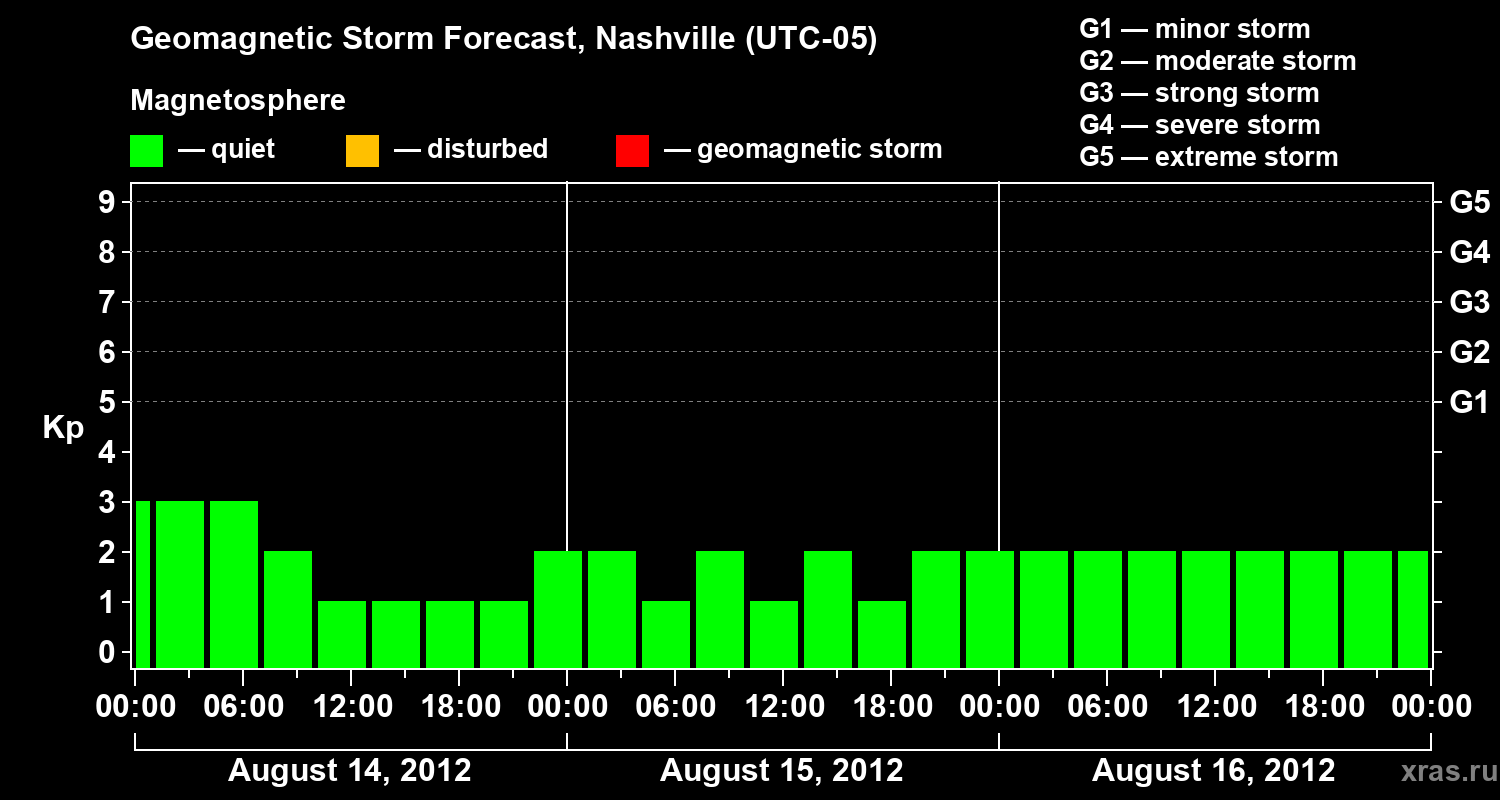 Geomagnetic storm forecast in Nashville for Aug 14, 2012
