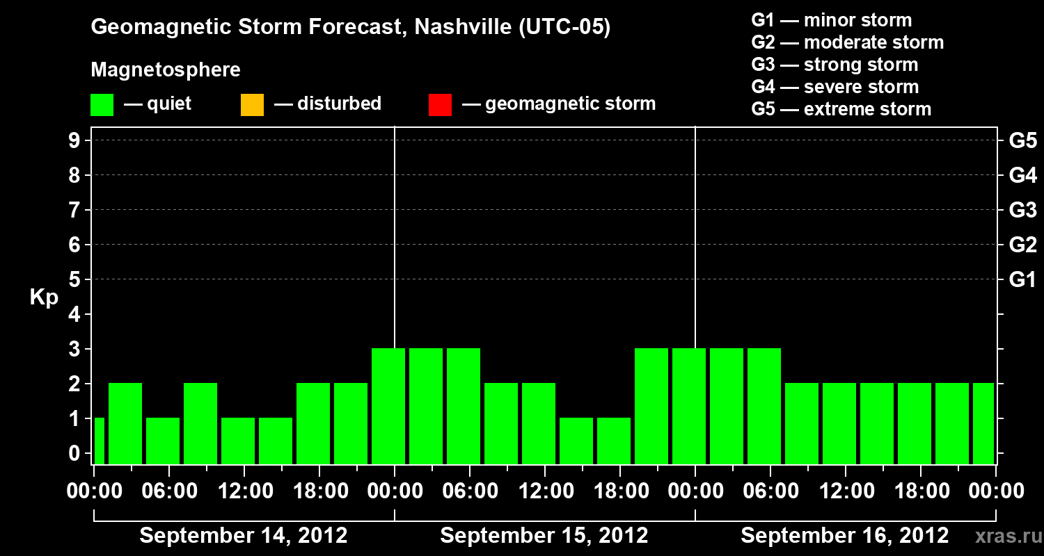 Geomagnetic storm forecast in Nashville for Sep 14, 2012