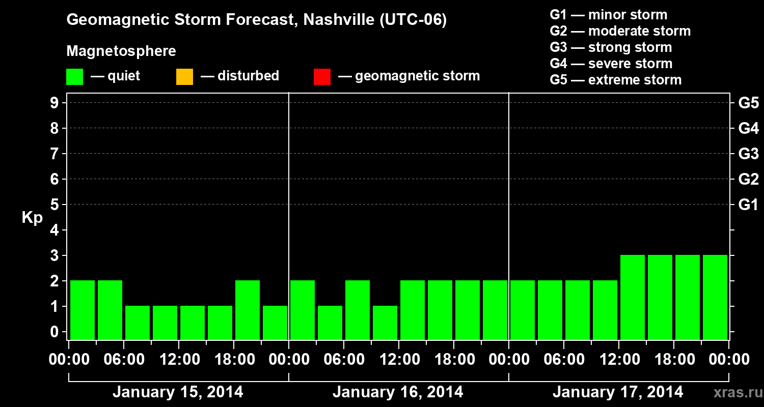Geomagnetic storm forecast in Nashville for Jan 15, 2014