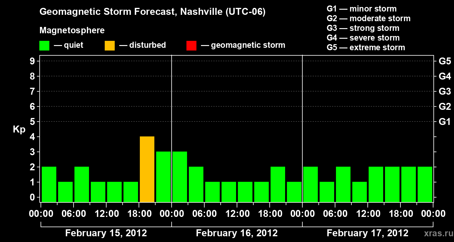 Geomagnetic storm forecast in Nashville for Feb 15, 2012
