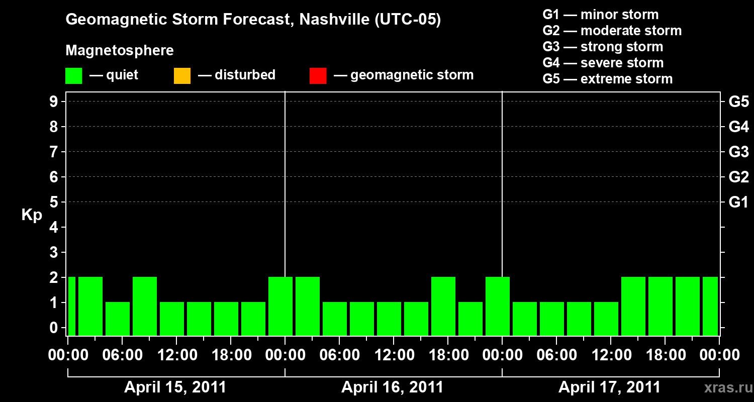 Geomagnetic storm forecast in Nashville for Apr 15, 2011