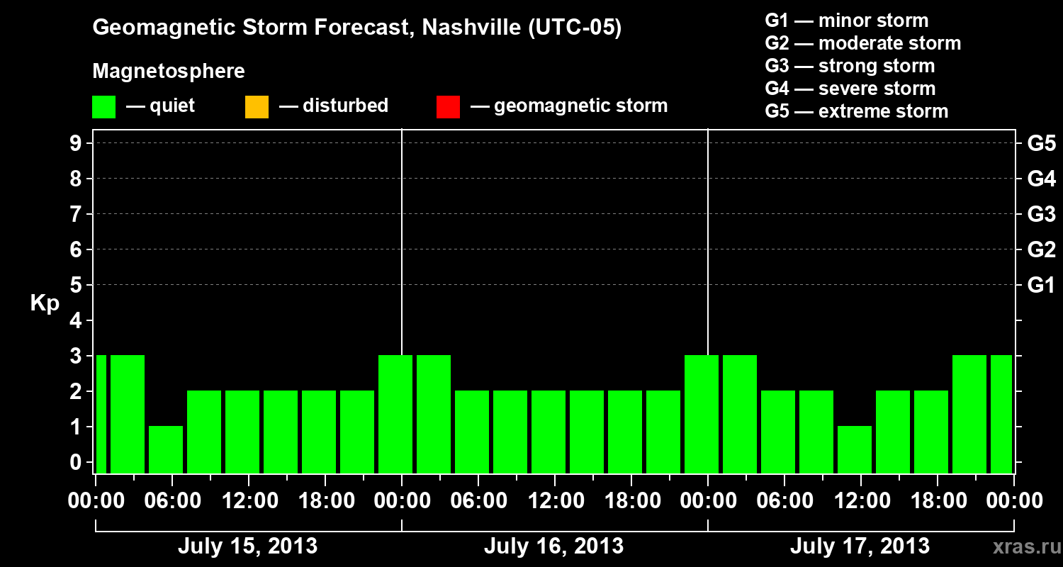 Geomagnetic storm forecast in Nashville for Jul 15, 2013