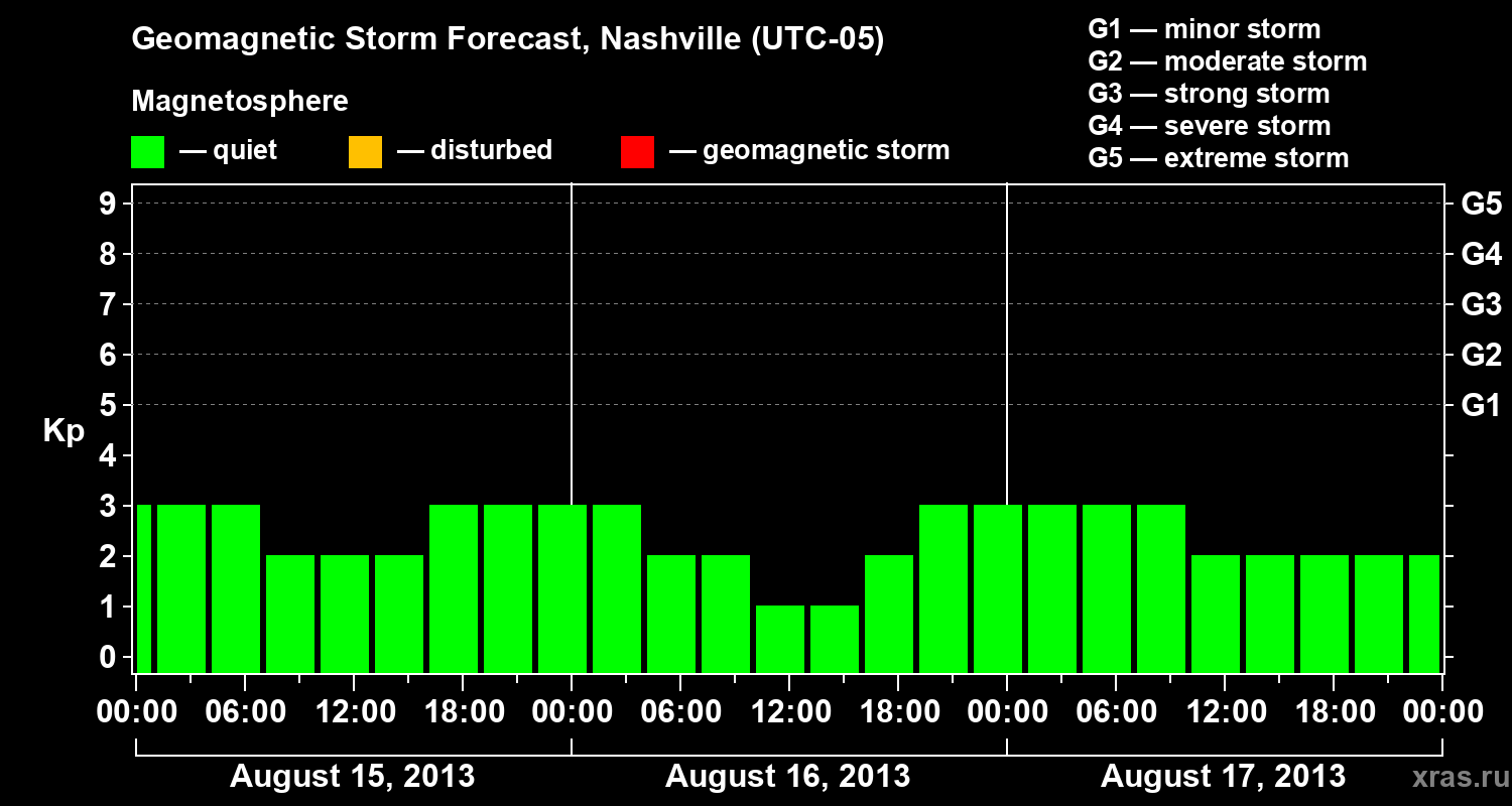Geomagnetic storm forecast in Nashville for Aug 15, 2013