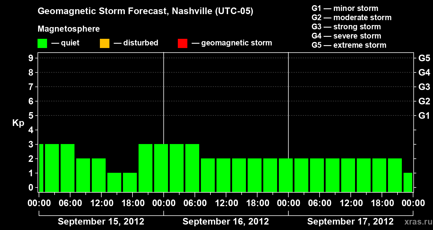 Geomagnetic storm forecast in Nashville for Sep 15, 2012