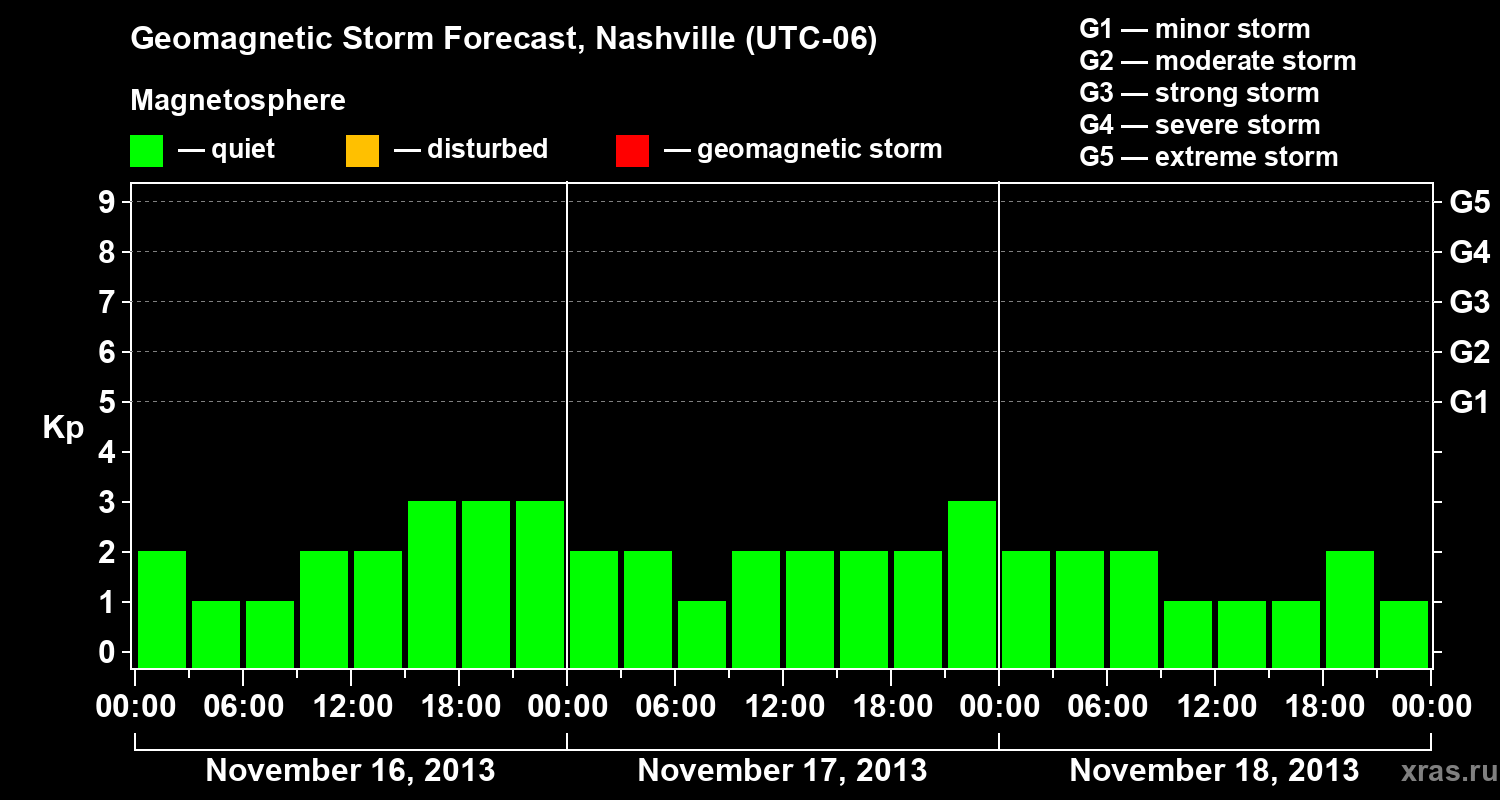 Geomagnetic storm forecast in Nashville for Nov 16, 2013