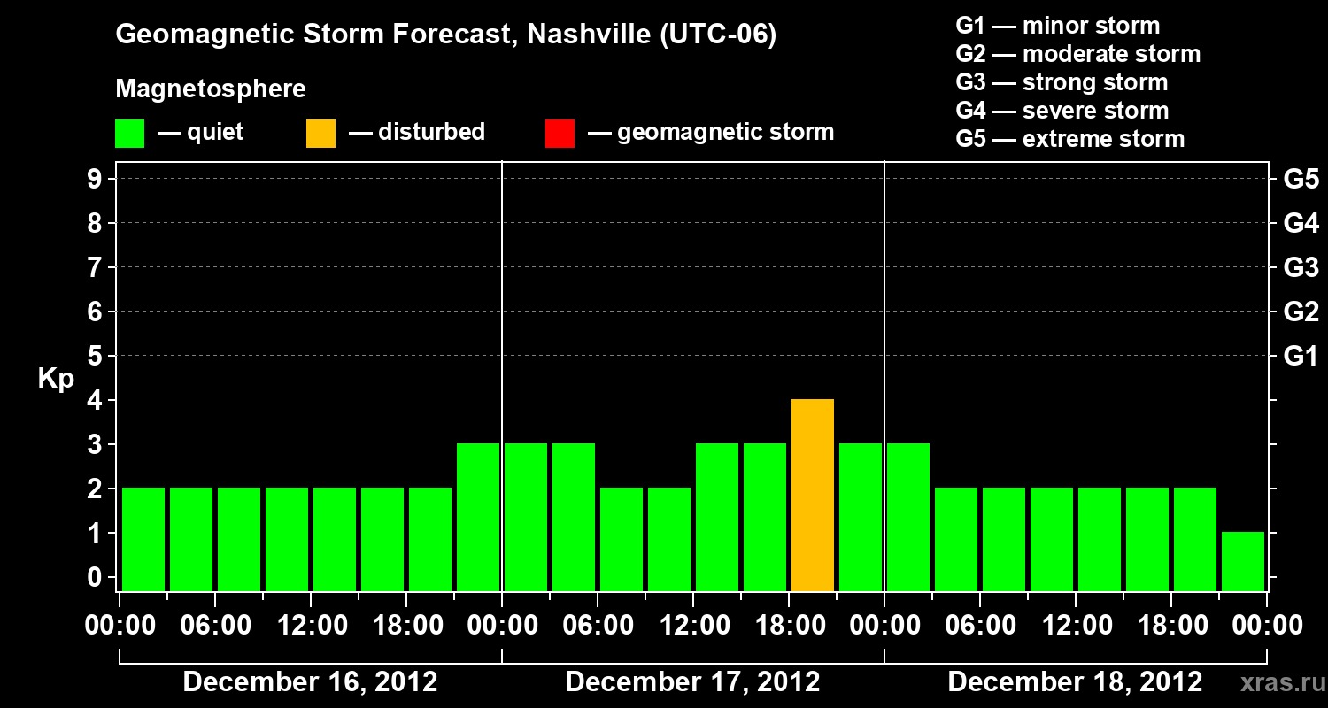 Geomagnetic storm forecast in Nashville for Dec 16, 2012