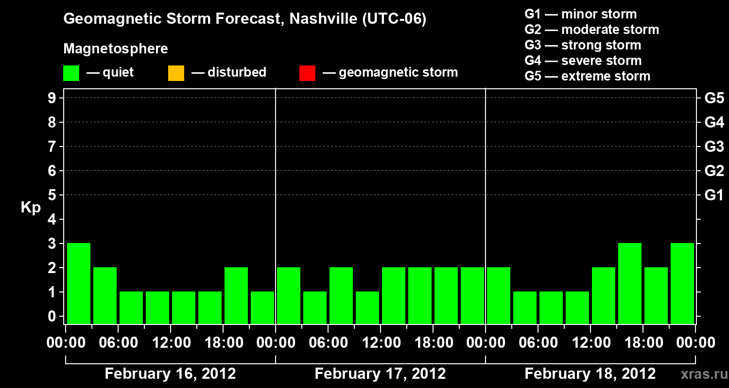 Geomagnetic storm forecast in Nashville for Feb 16, 2012