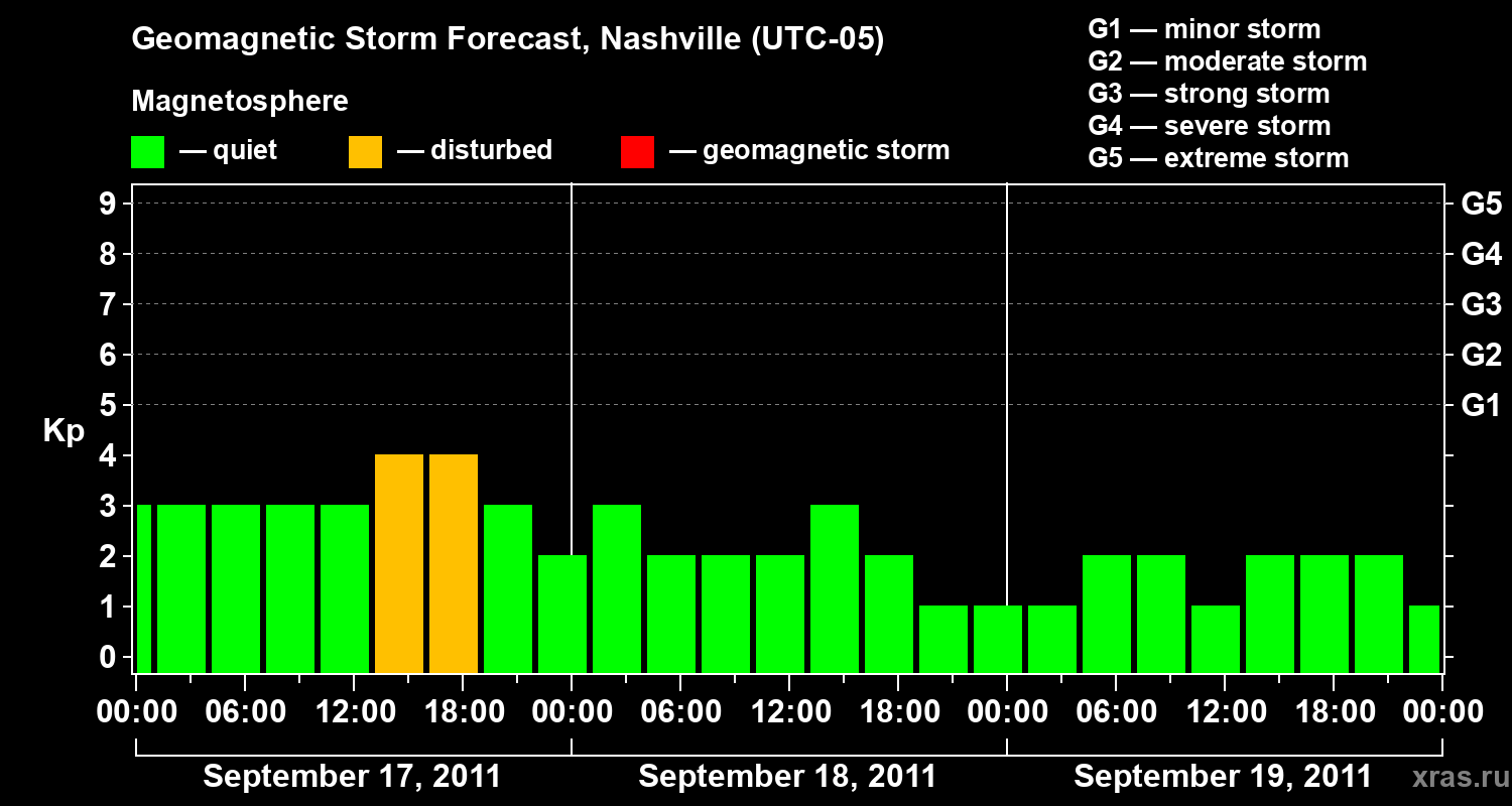Geomagnetic storm forecast in Nashville for Sep 17, 2011