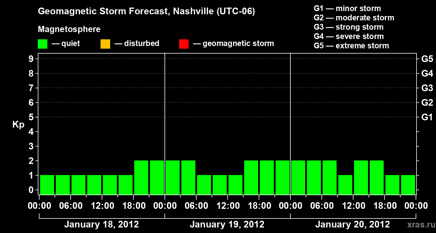 Geomagnetic storm forecast in Nashville for Jan 18, 2012