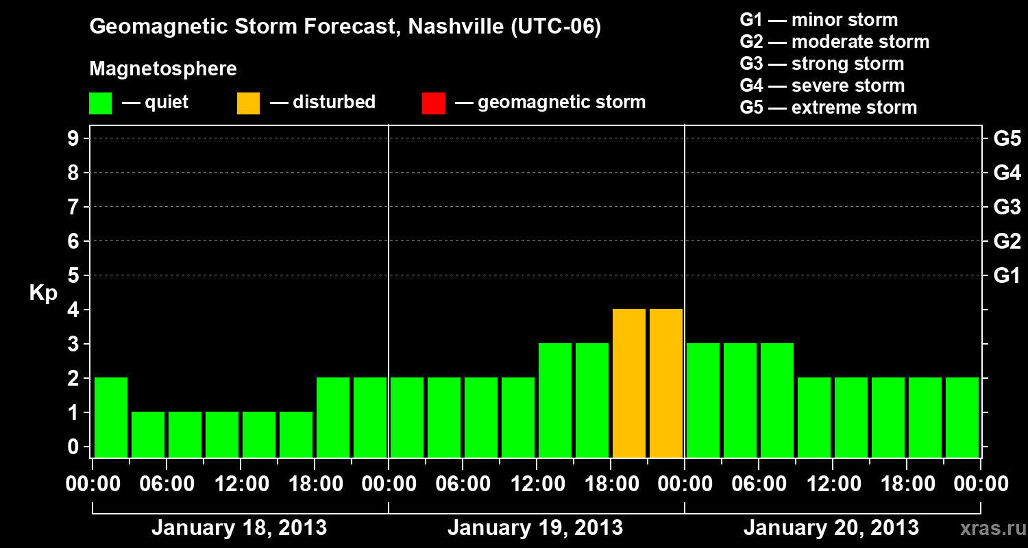 Geomagnetic storm forecast in Nashville for Jan 18, 2013