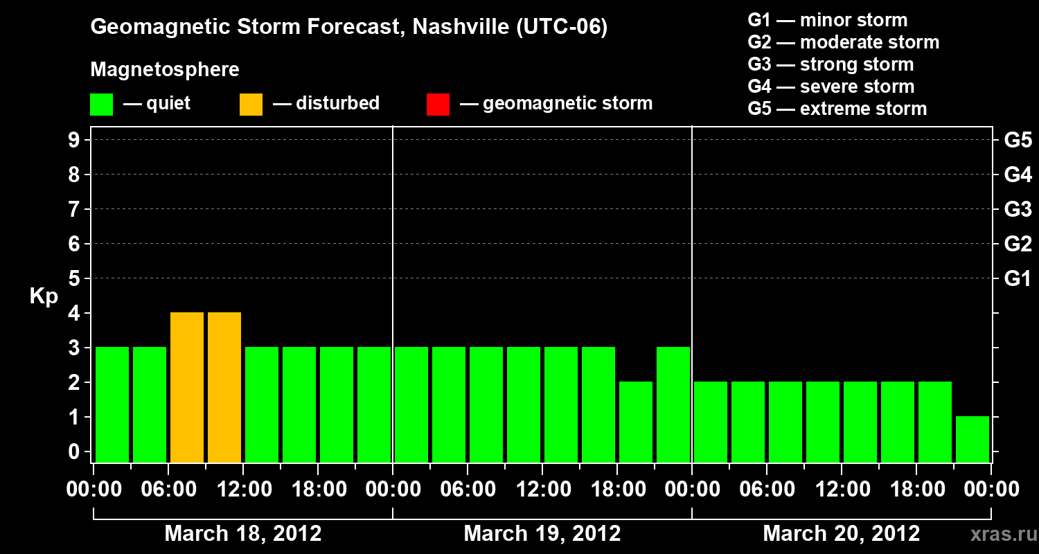 Geomagnetic storm forecast in Nashville for Mar 18, 2012