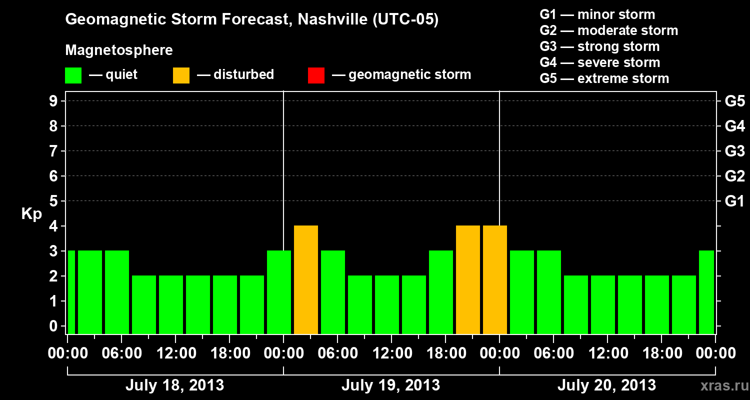 Geomagnetic storm forecast in Nashville for Jul 18, 2013