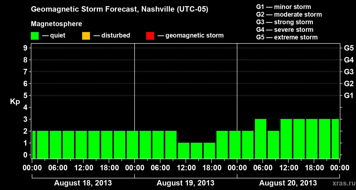 Geomagnetic storm forecast in Nashville for Aug 18, 2013