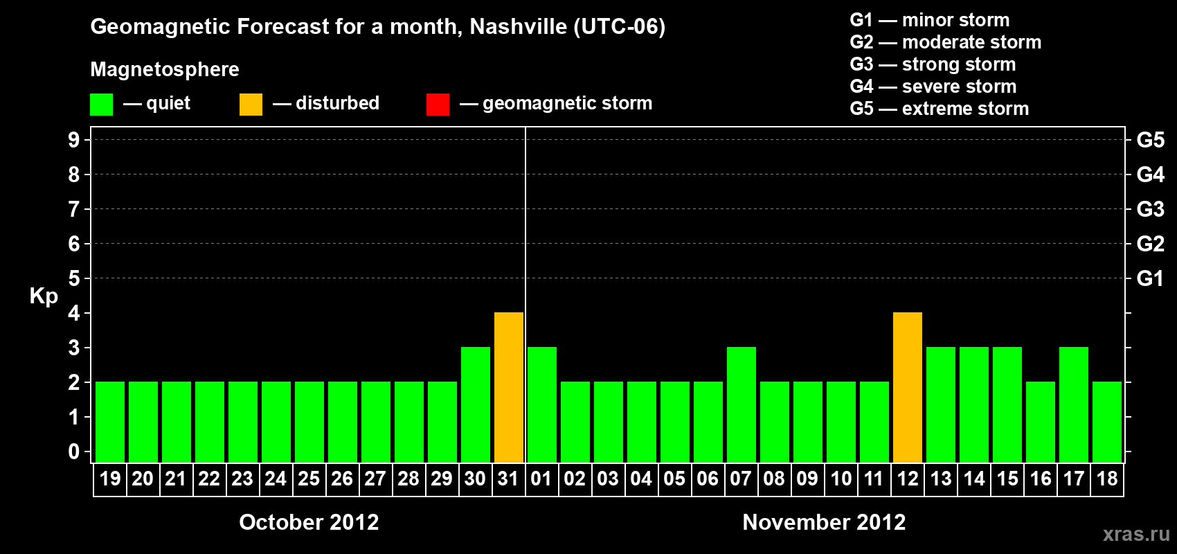 Geomagnetic storm forecast in Nashville for Oct 19, 2012