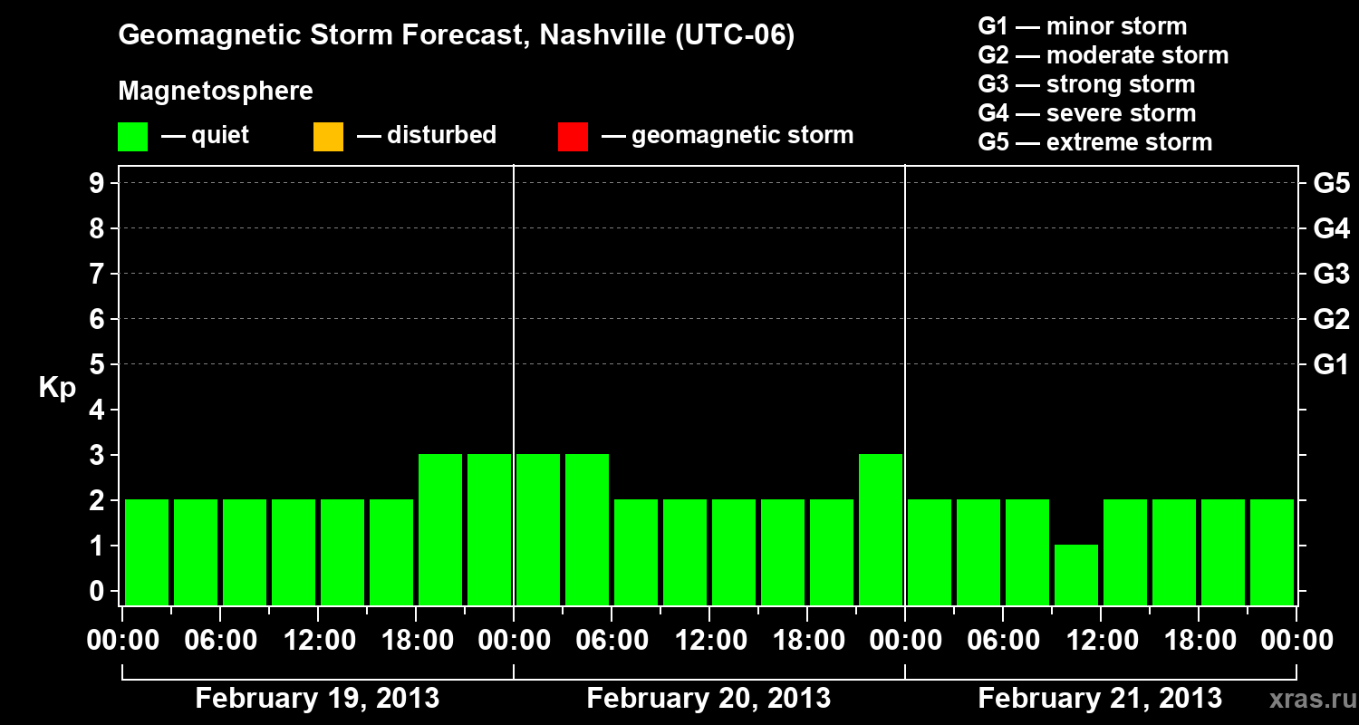 Geomagnetic storm forecast in Nashville for Feb 19, 2013