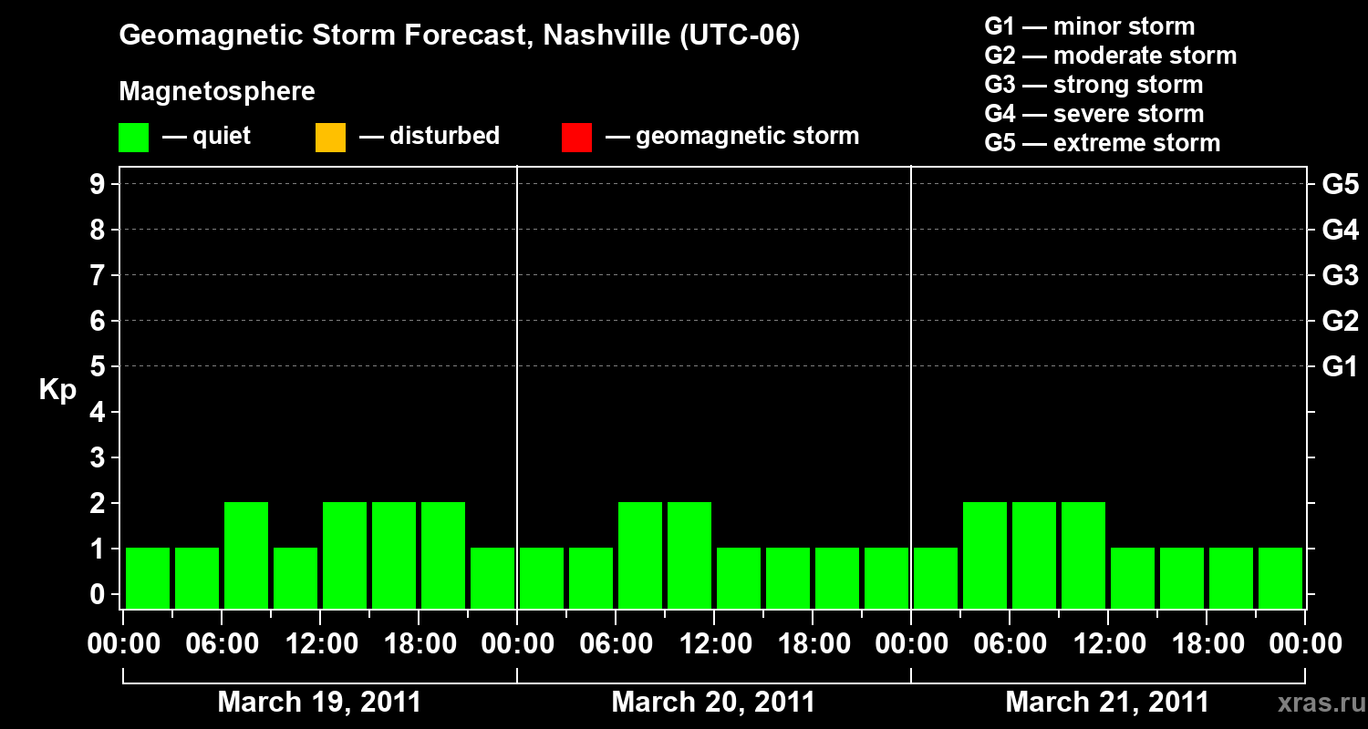 Geomagnetic storm forecast in Nashville for Mar 19, 2011