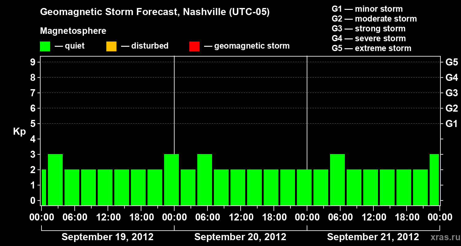 Geomagnetic storm forecast in Nashville for Sep 19, 2012