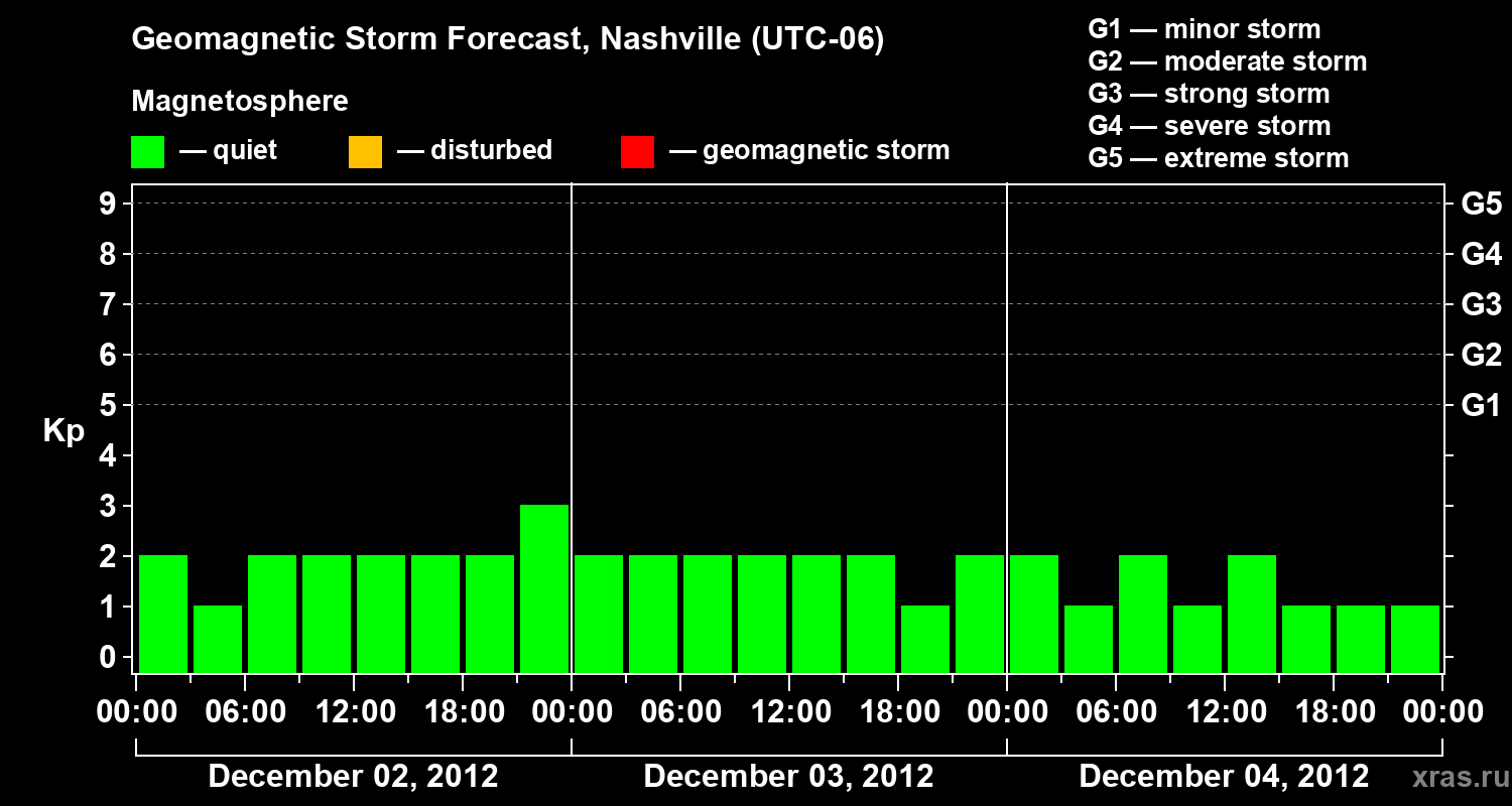 Geomagnetic storm forecast in Nashville for Dec 02, 2012