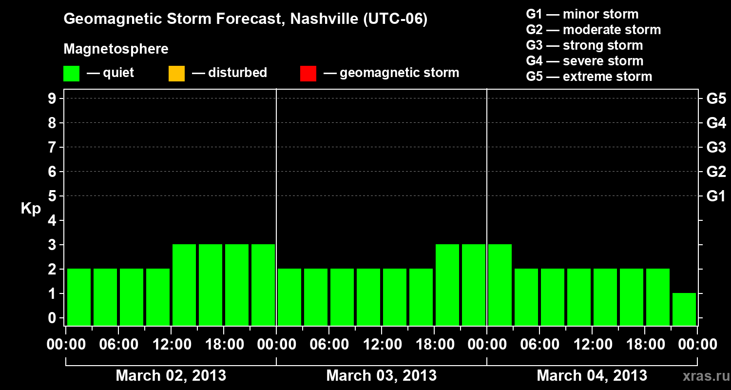 Geomagnetic storm forecast in Nashville for Mar 02, 2013