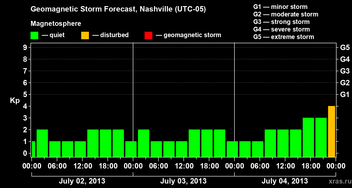 Geomagnetic storm forecast in Nashville for Jul 02, 2013
