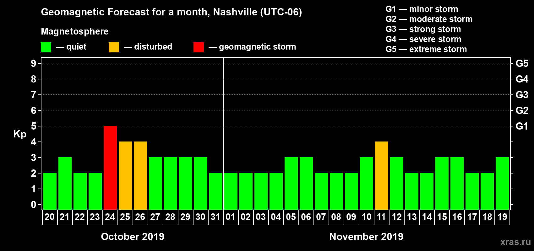 Geomagnetic storm forecast in Nashville for Oct 20, 2019