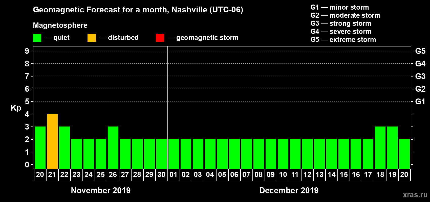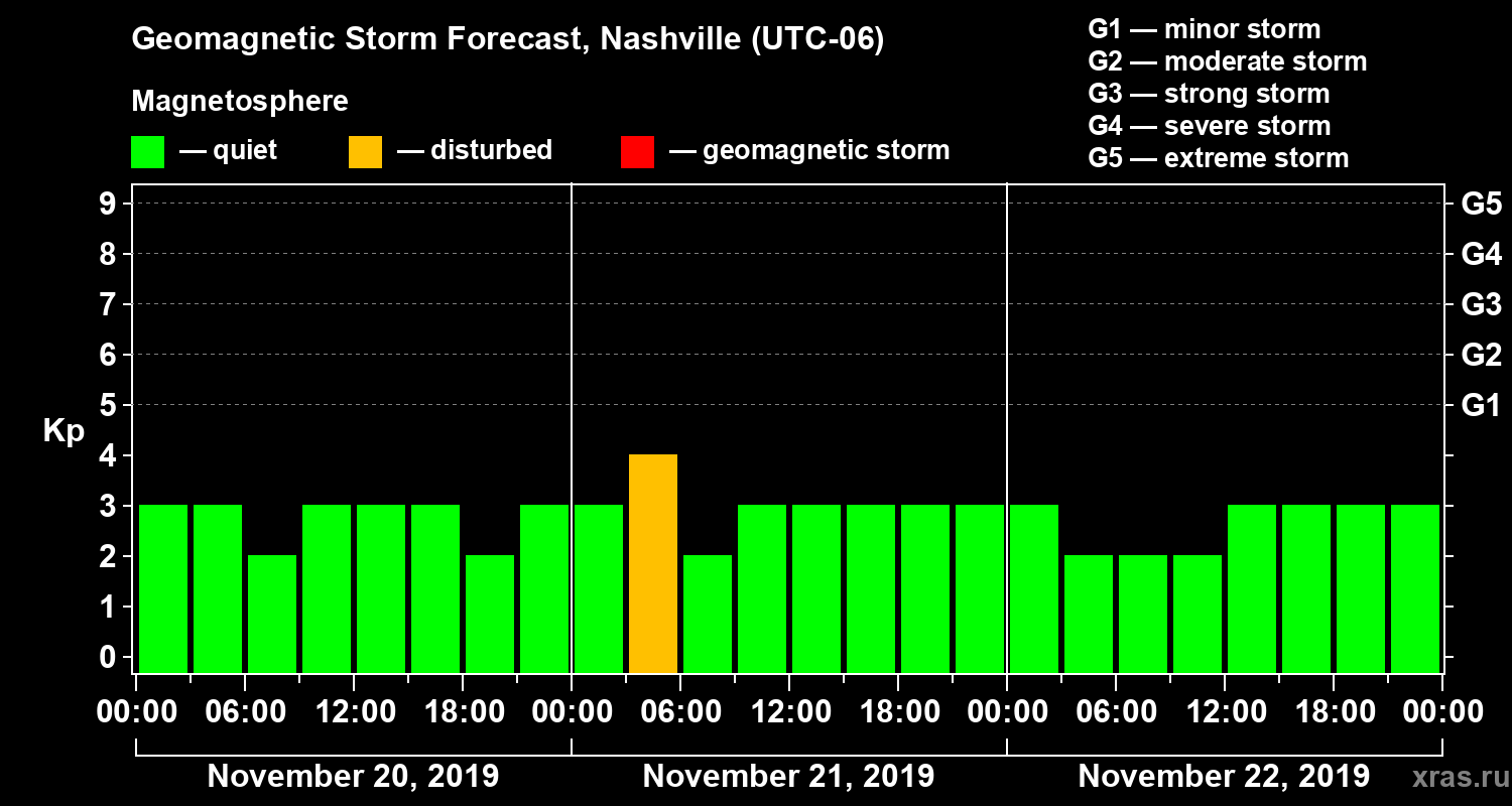 Geomagnetic storm forecast in Nashville for Nov 20, 2019