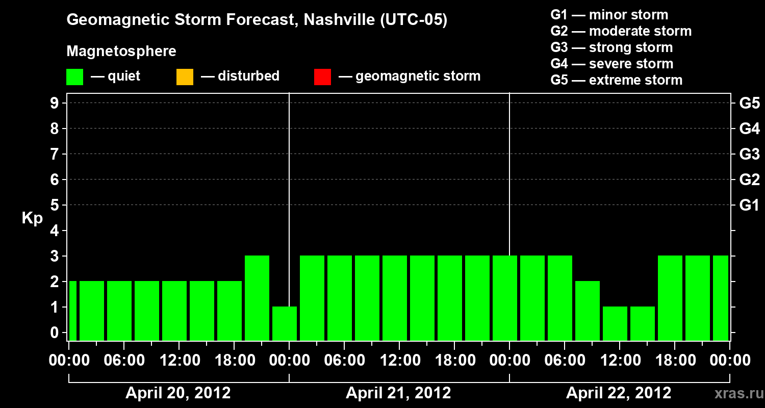 Geomagnetic storm forecast in Nashville for Apr 20, 2012