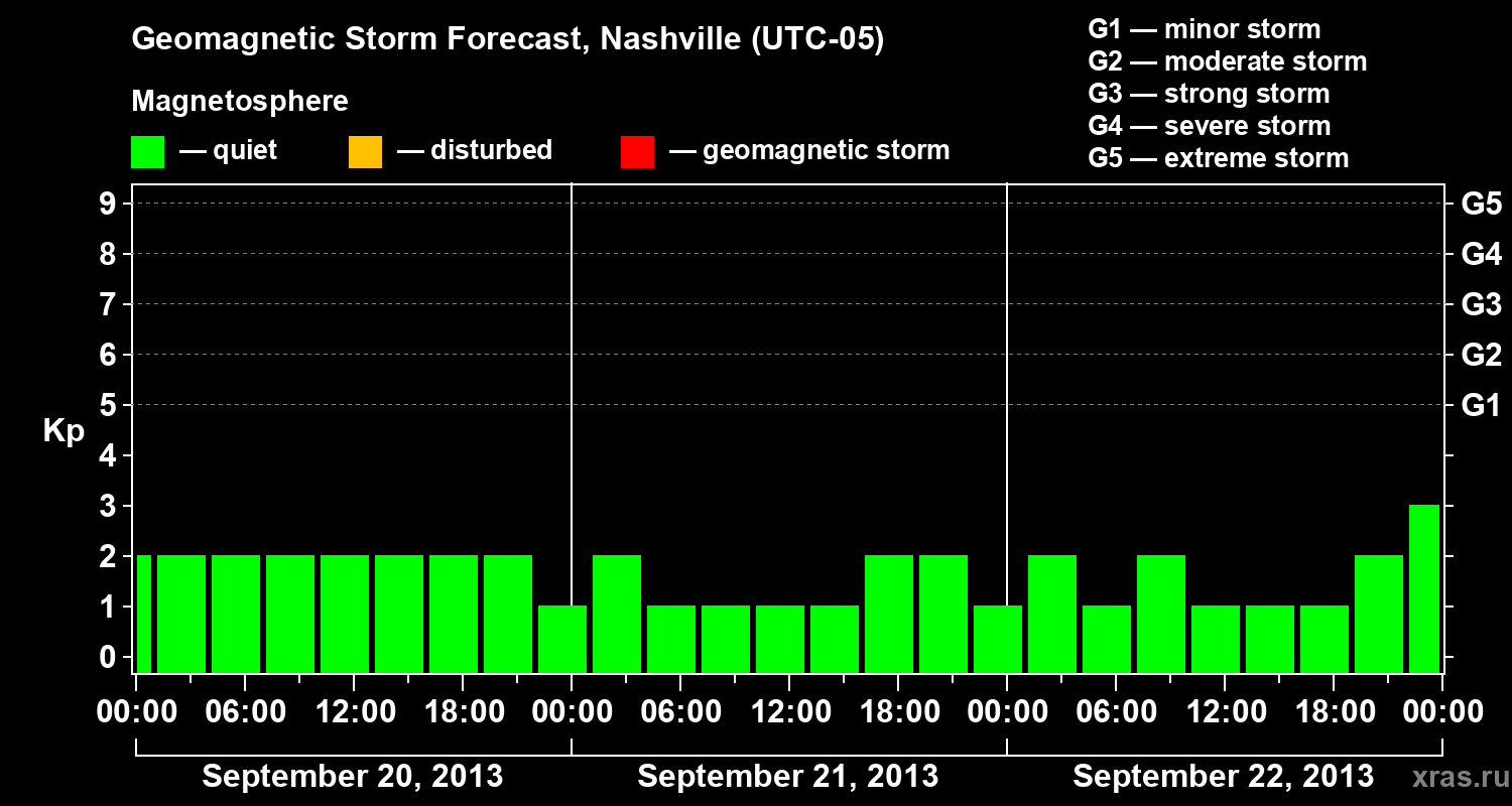 Geomagnetic storm forecast in Nashville for Sep 20, 2013