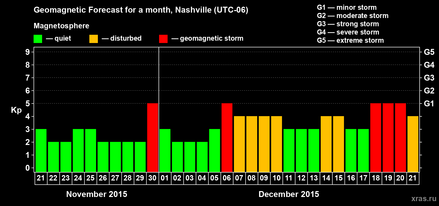Geomagnetic storm forecast in Nashville for Nov 21, 2015
