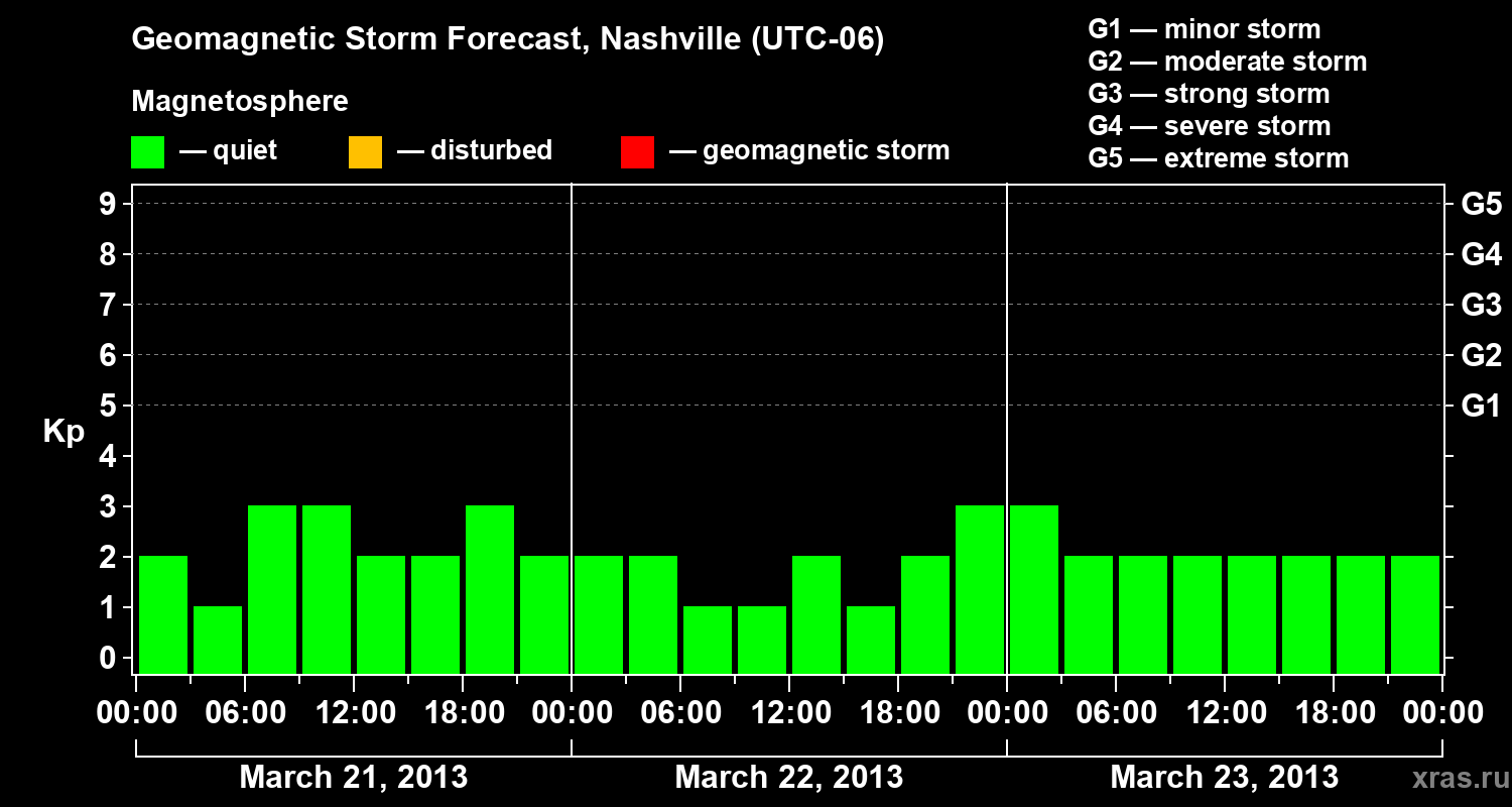 Geomagnetic storm forecast in Nashville for Mar 21, 2013