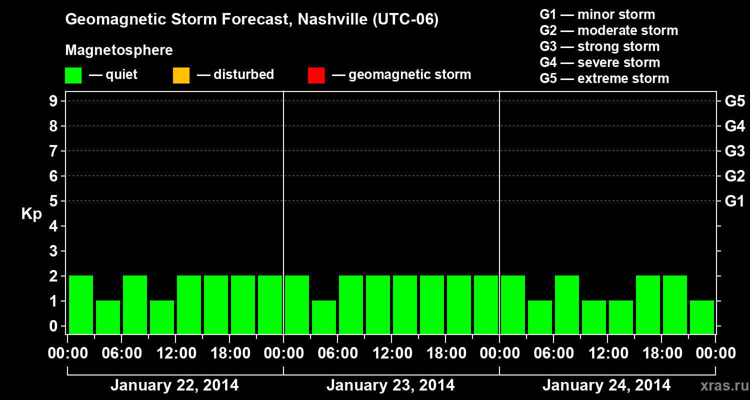 Geomagnetic storm forecast in Nashville for Jan 22, 2014