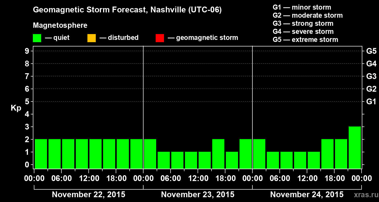 Geomagnetic storm forecast in Nashville for Nov 22, 2015