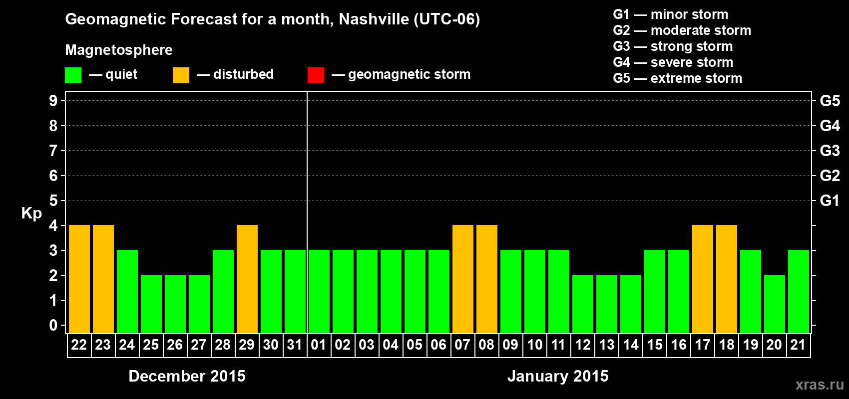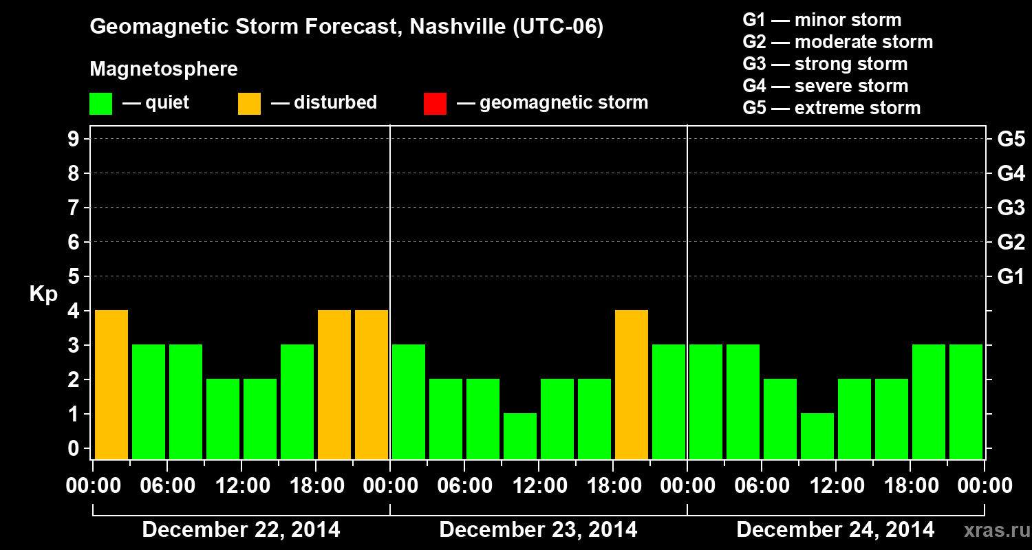 Geomagnetic storm forecast in Nashville for Dec 22, 2014