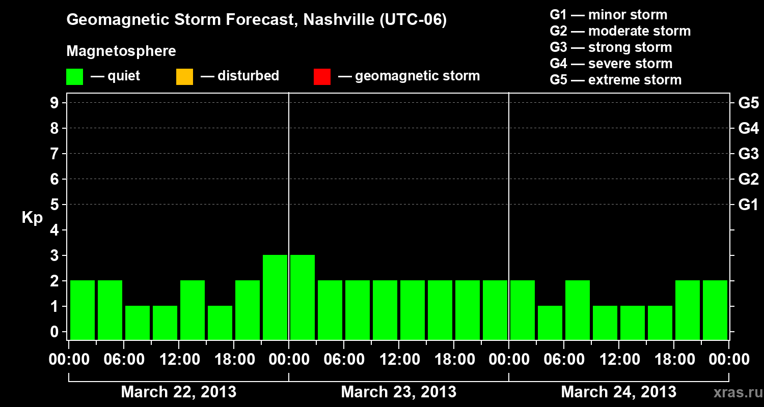 Geomagnetic storm forecast in Nashville for Mar 22, 2013
