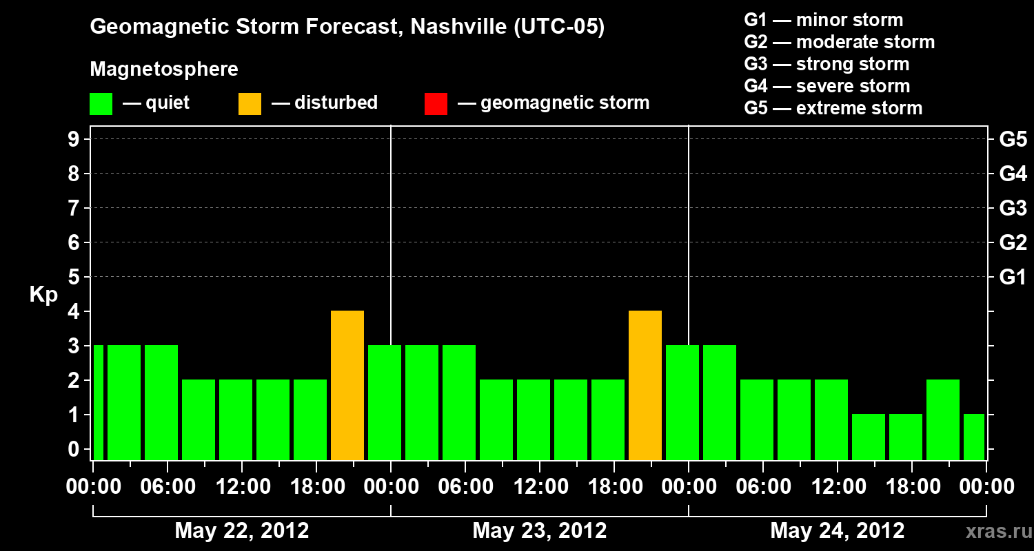 Geomagnetic storm forecast in Nashville for May 22, 2012
